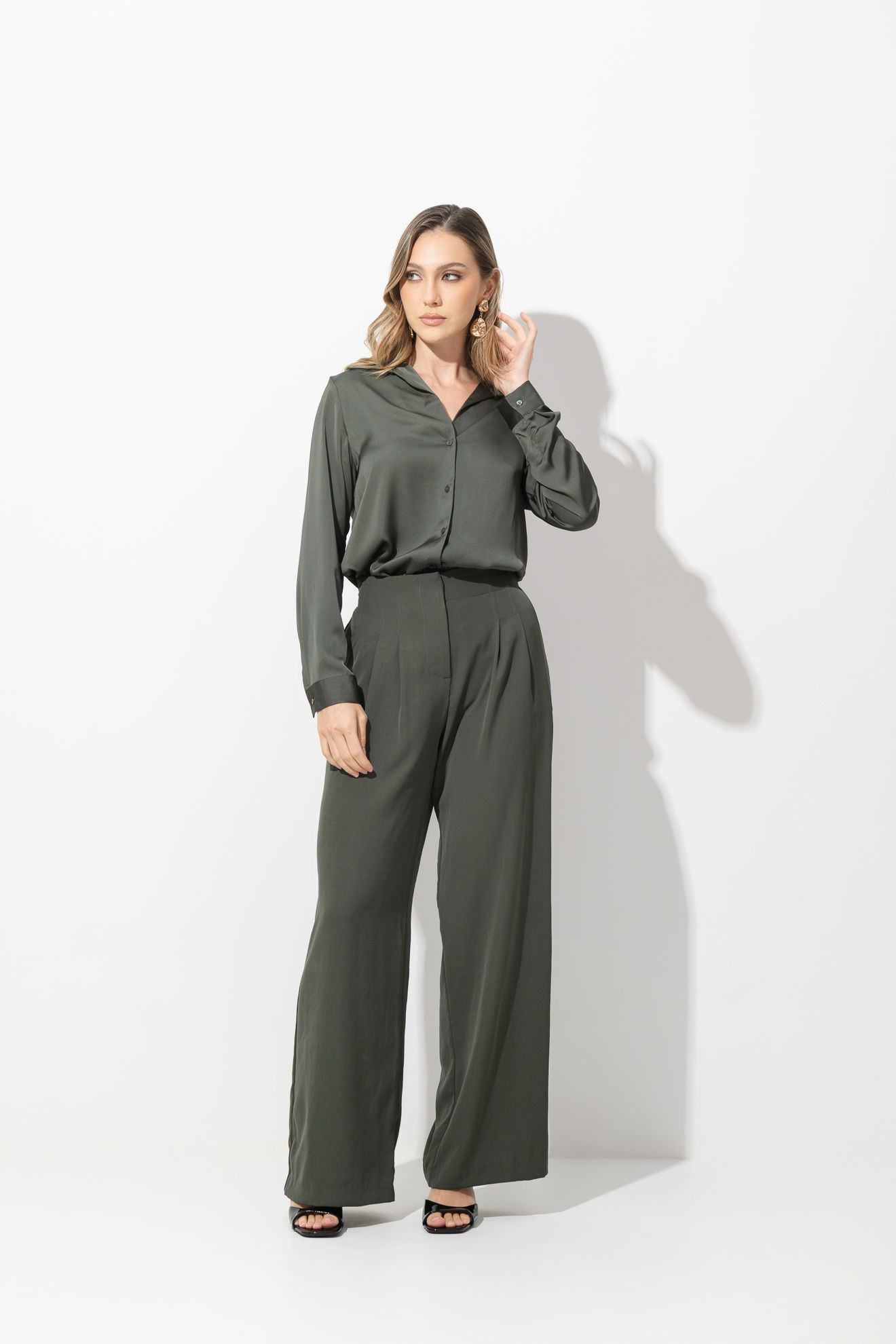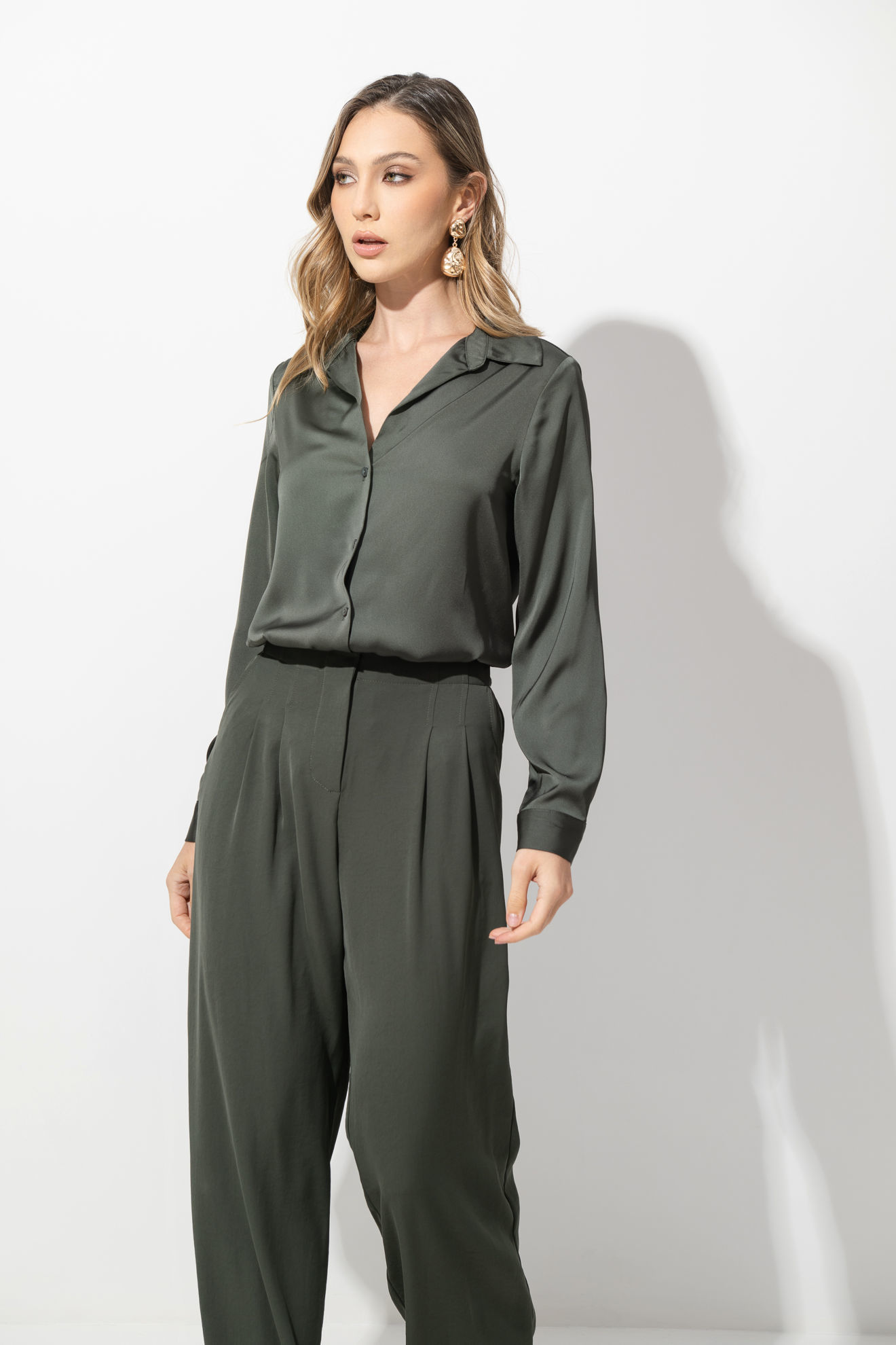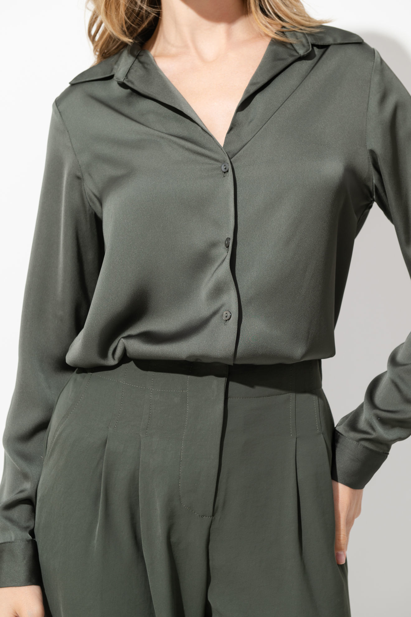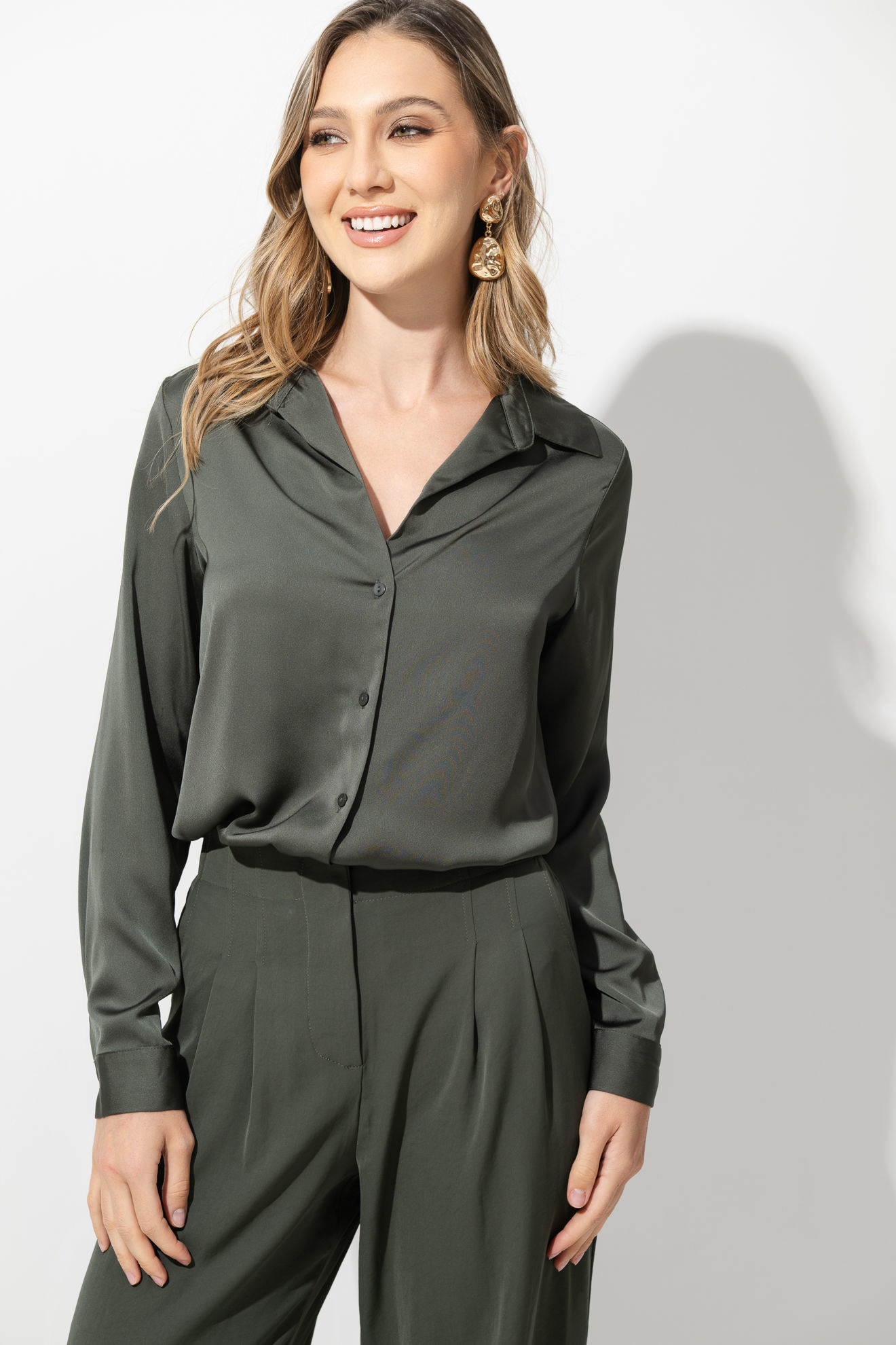 Camisera En Satin Manga Larga