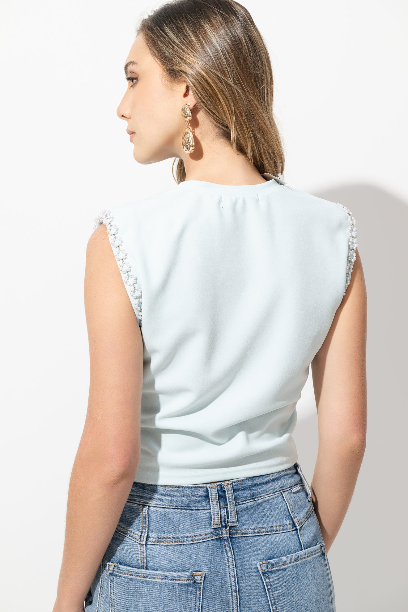 Blusa Con Hombreras, Detalle Perlas ( Exclusivo Pagina)