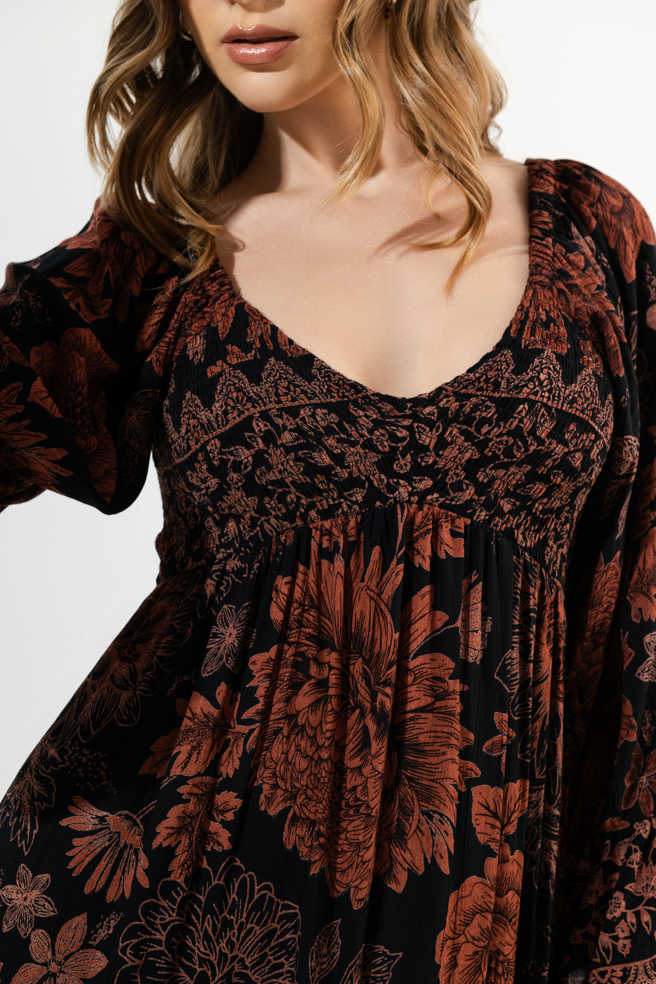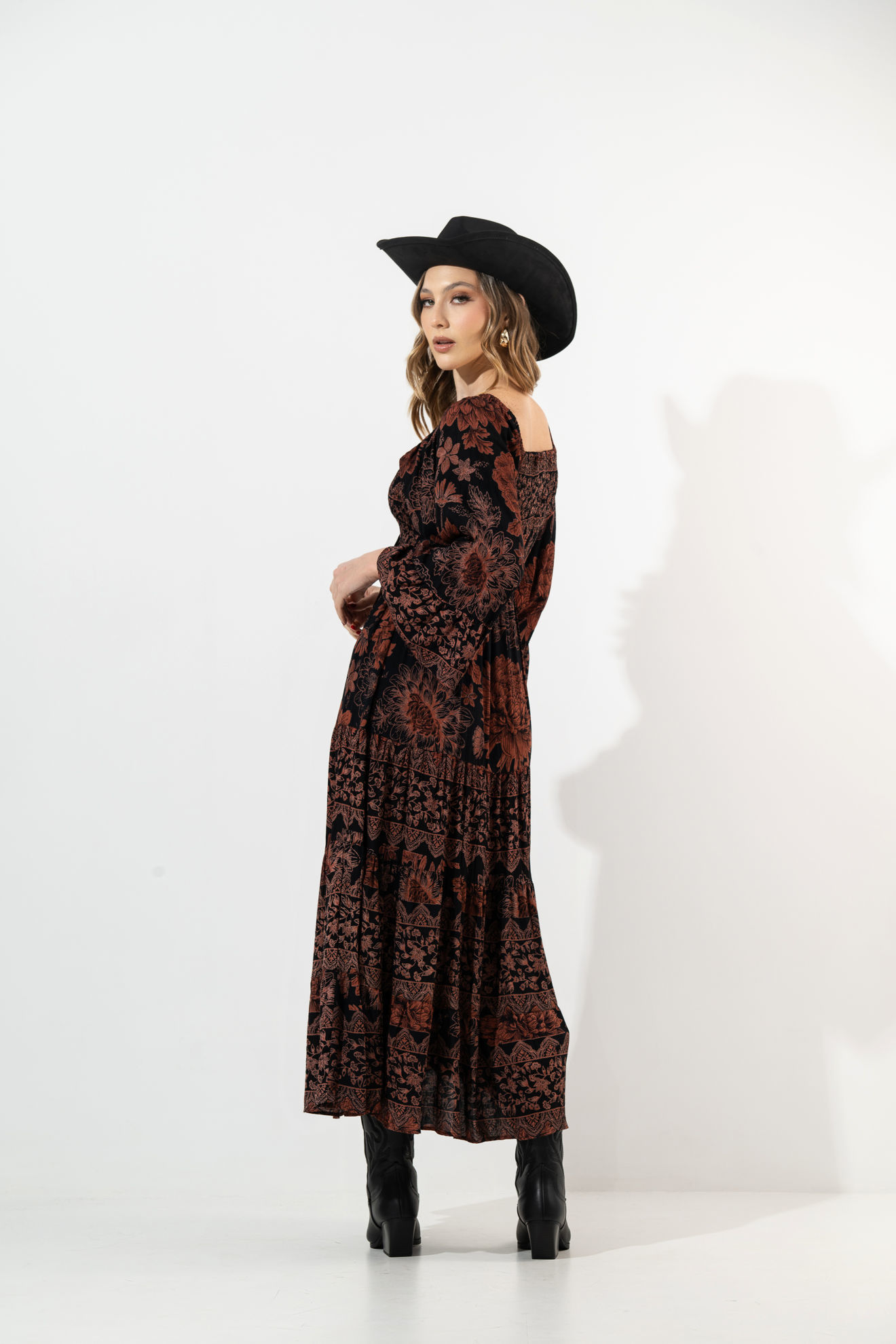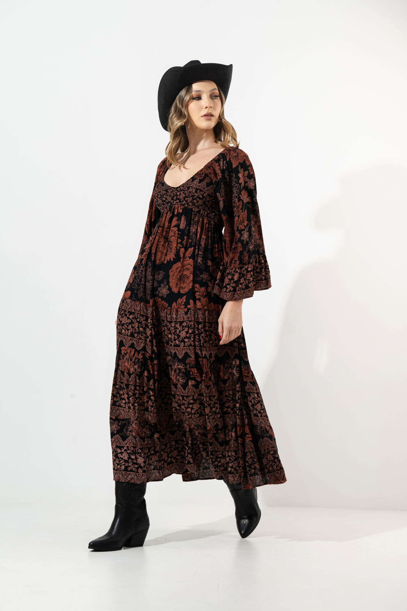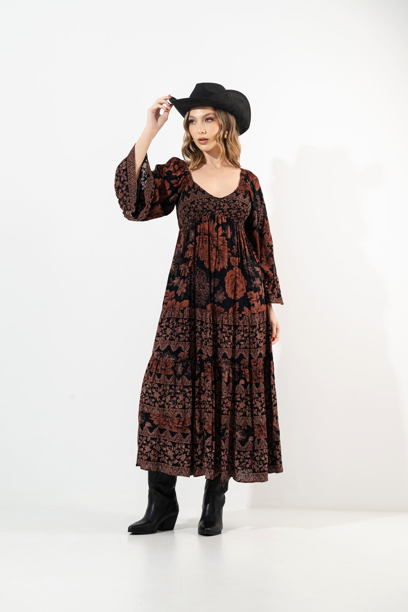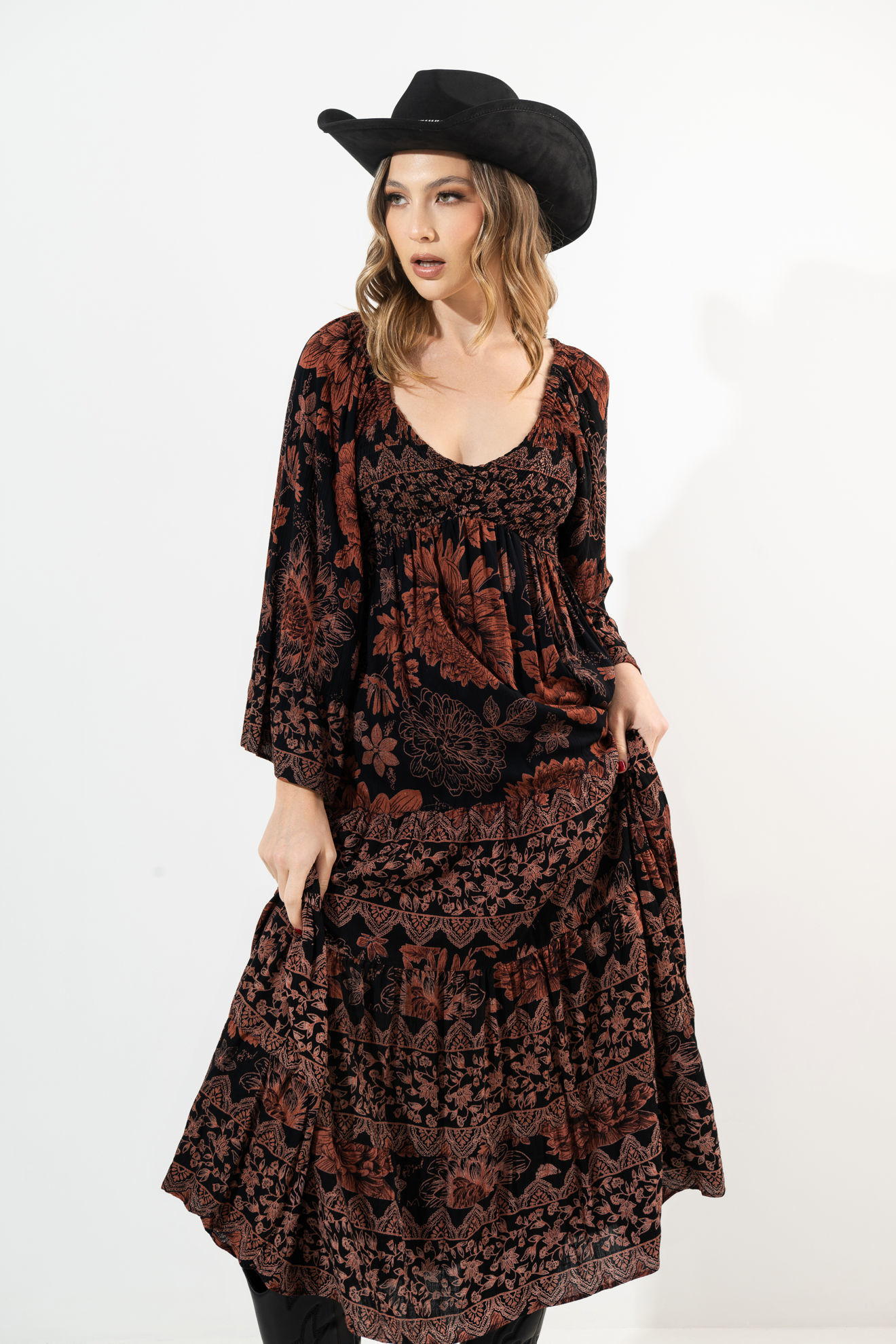 Vestido Manga Larga Estampado Cuello V