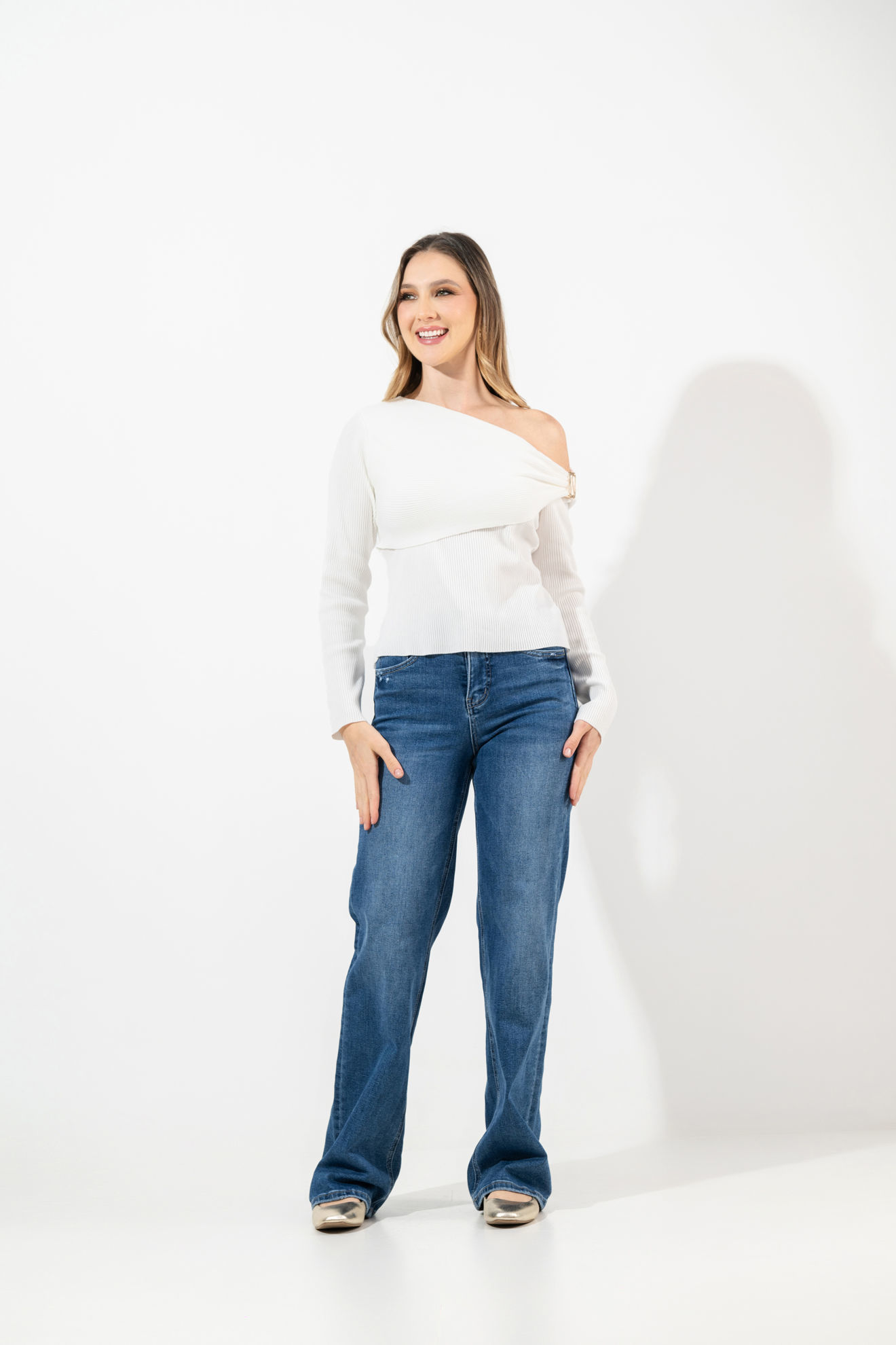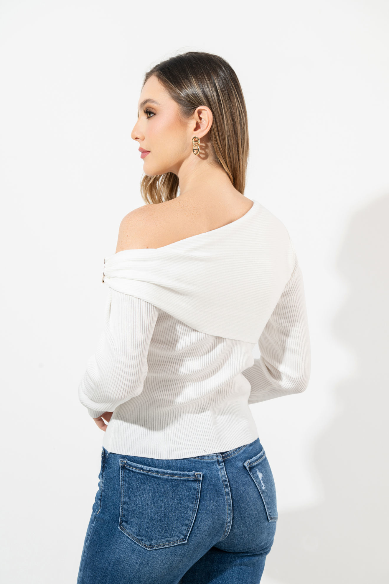 Blusa Tejida Manga Larga Off Shoulder