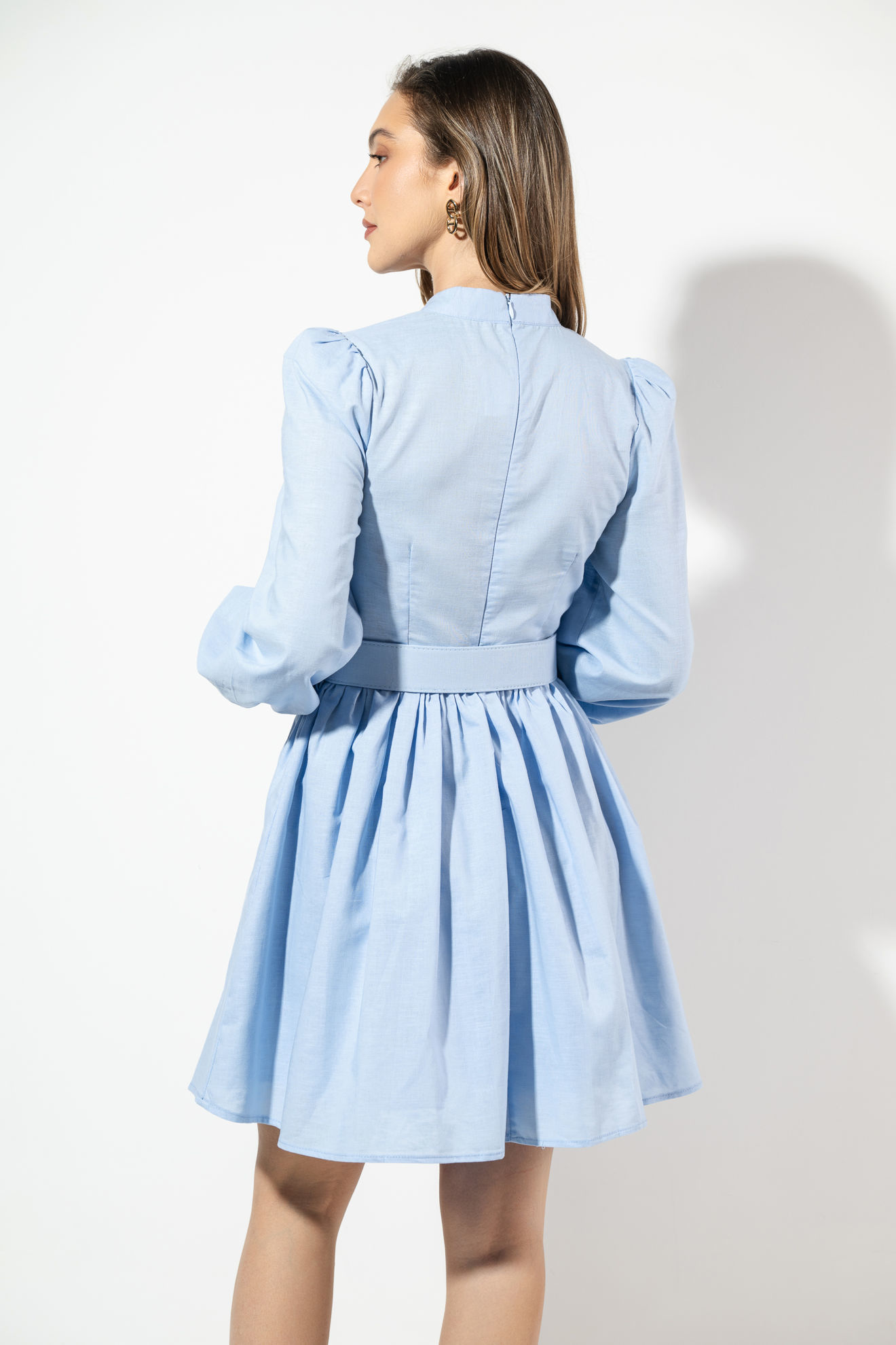 Vestido Manga Larga Con Cinturon, Botones Decorativos