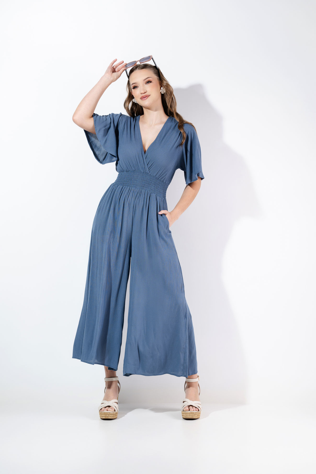 Jumpsuit En Rayon Manga Quimona, Cuello V