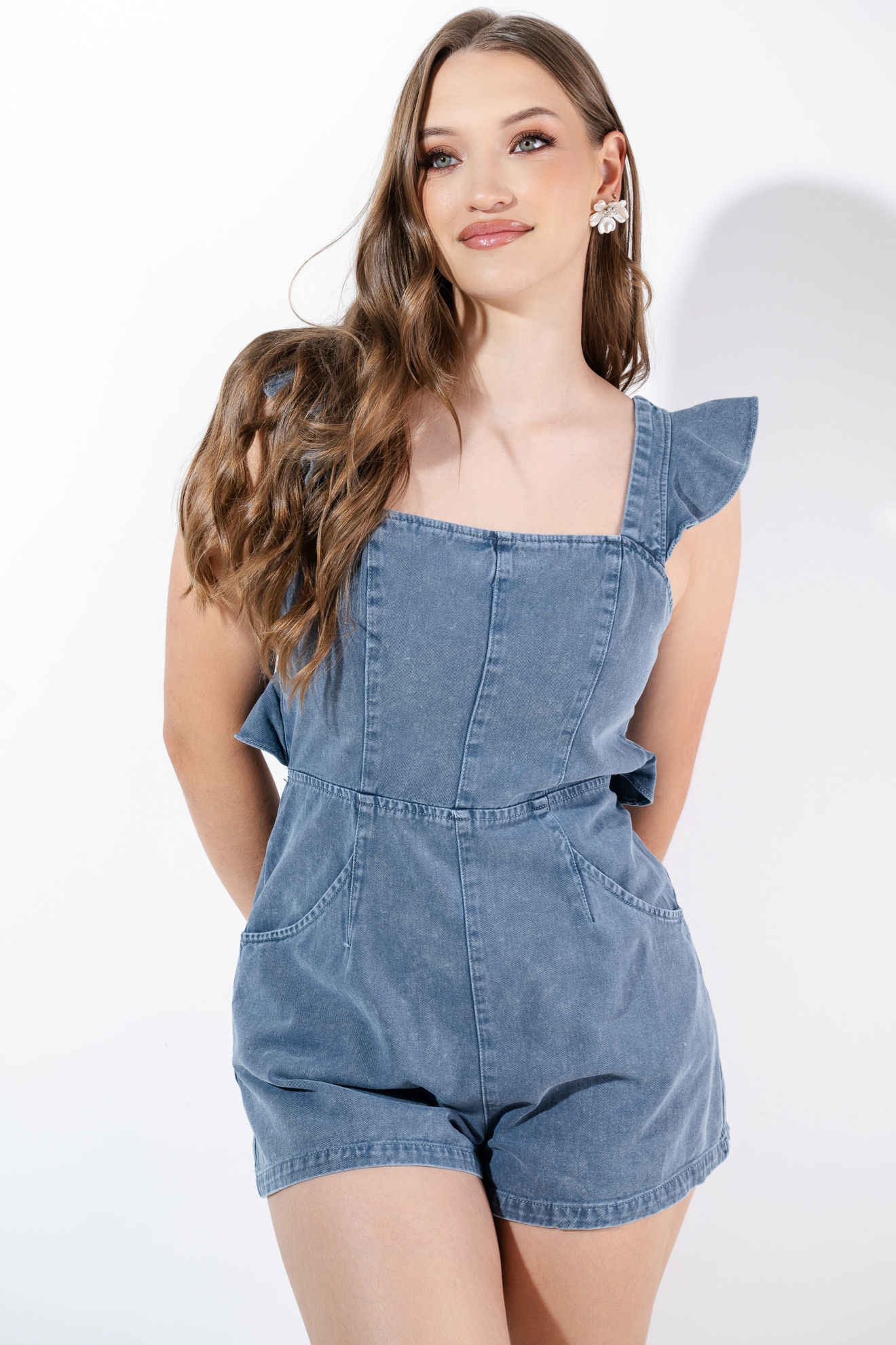 Romper Denim, Espalda Descubierta