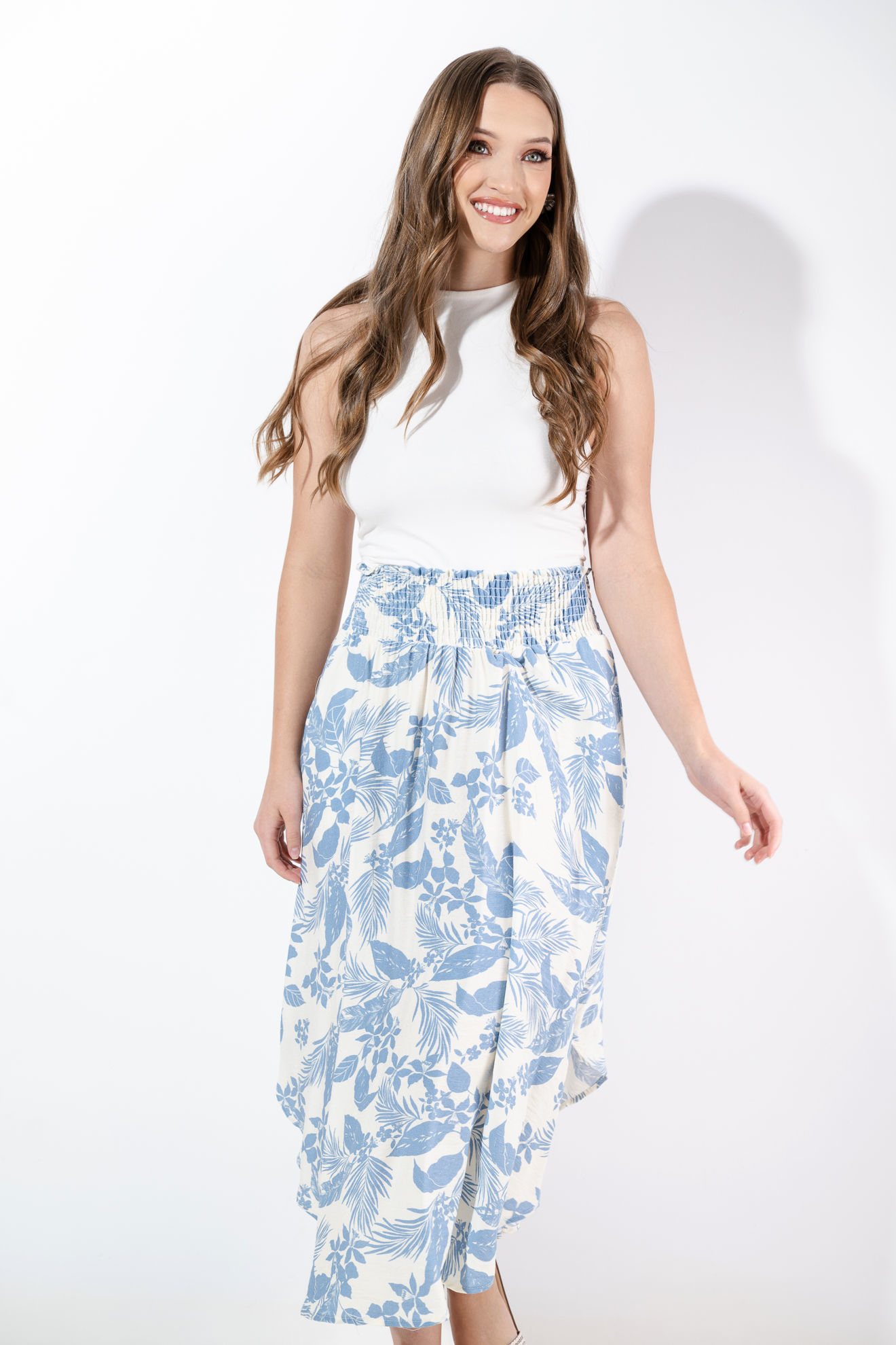 Falda En Rayon Print Floral Elastico Cintura