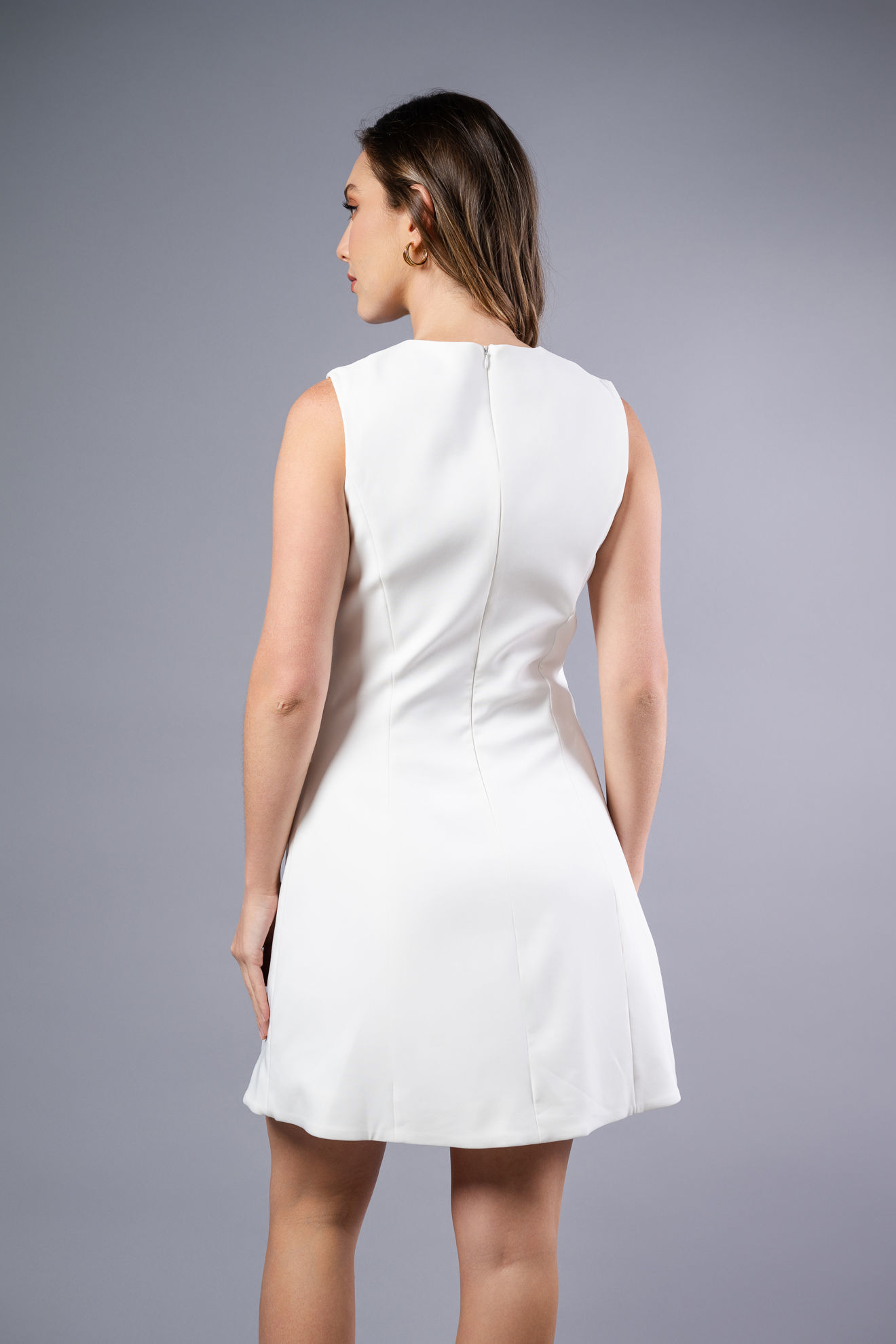 Vestido Sin Mangas Abertura Falda, Botones Decorativos