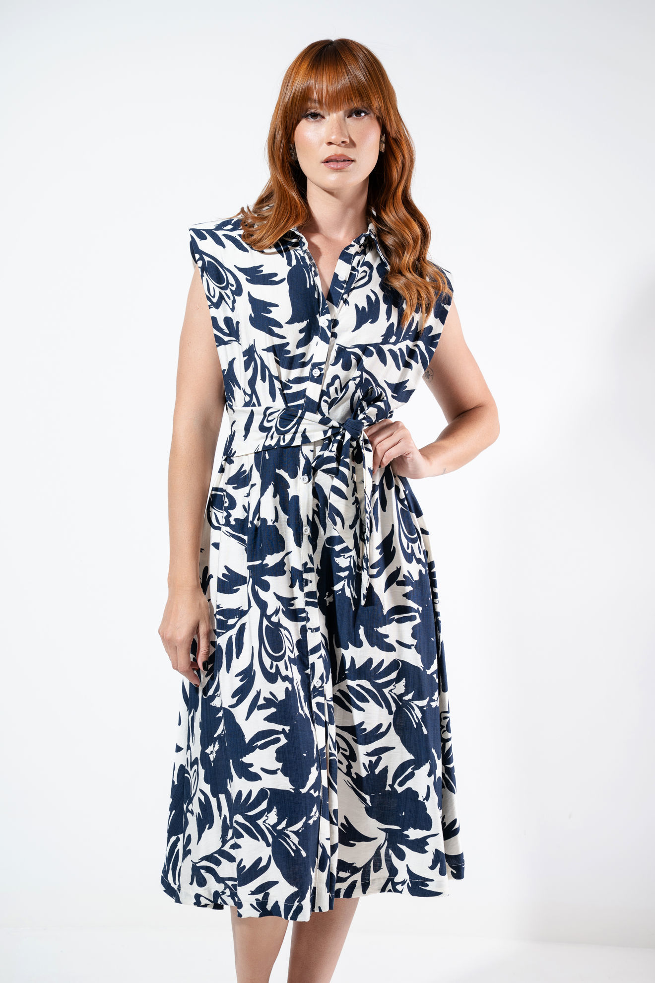 Vestido Con Hombreras En Rayon Estampado