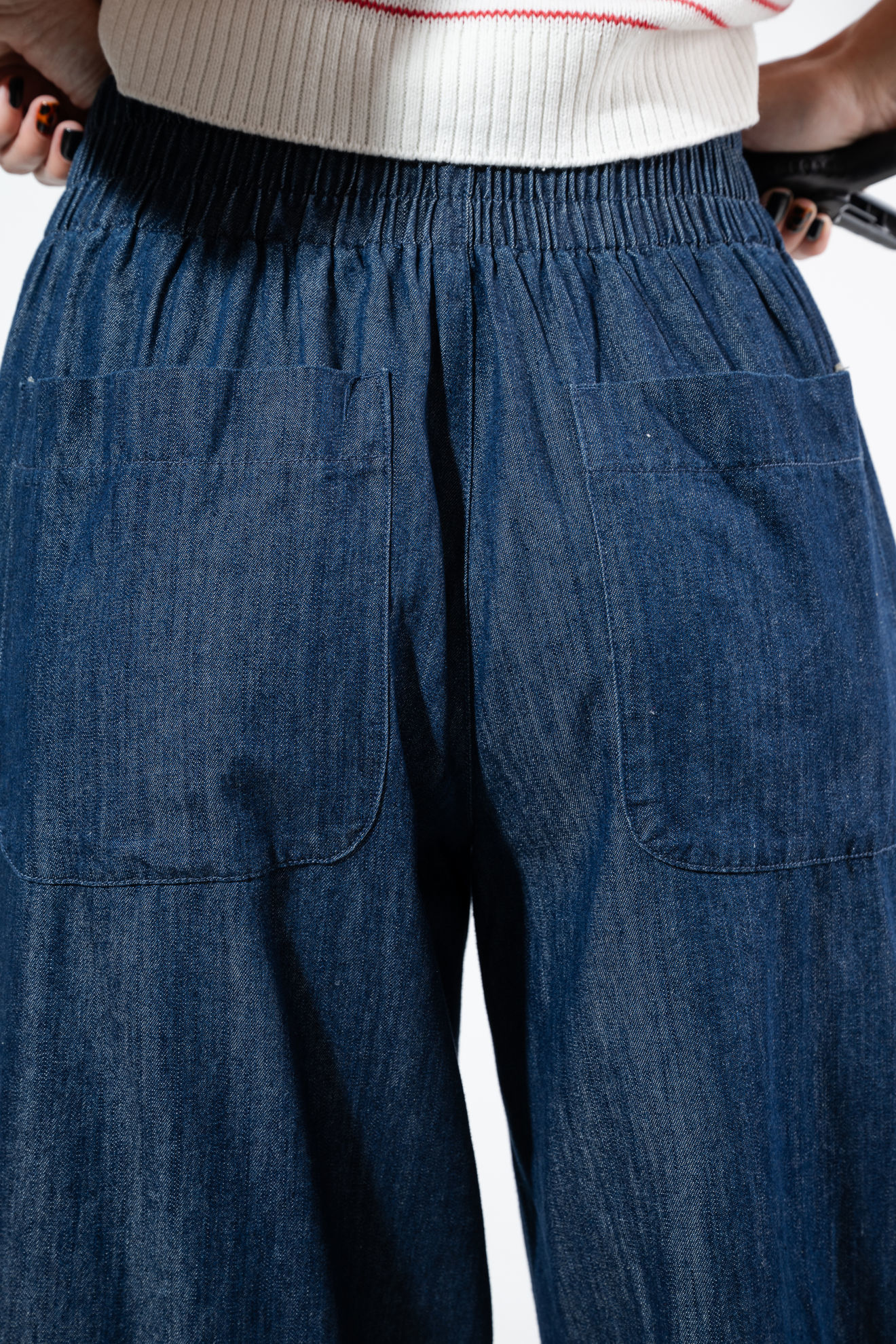 Pantalon Denim Elastico Cintura Trasera., Bolsillos Parche