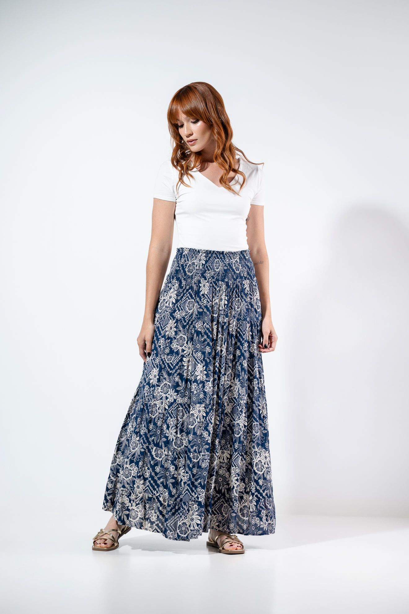 Falda Larga En Rayon Estampado