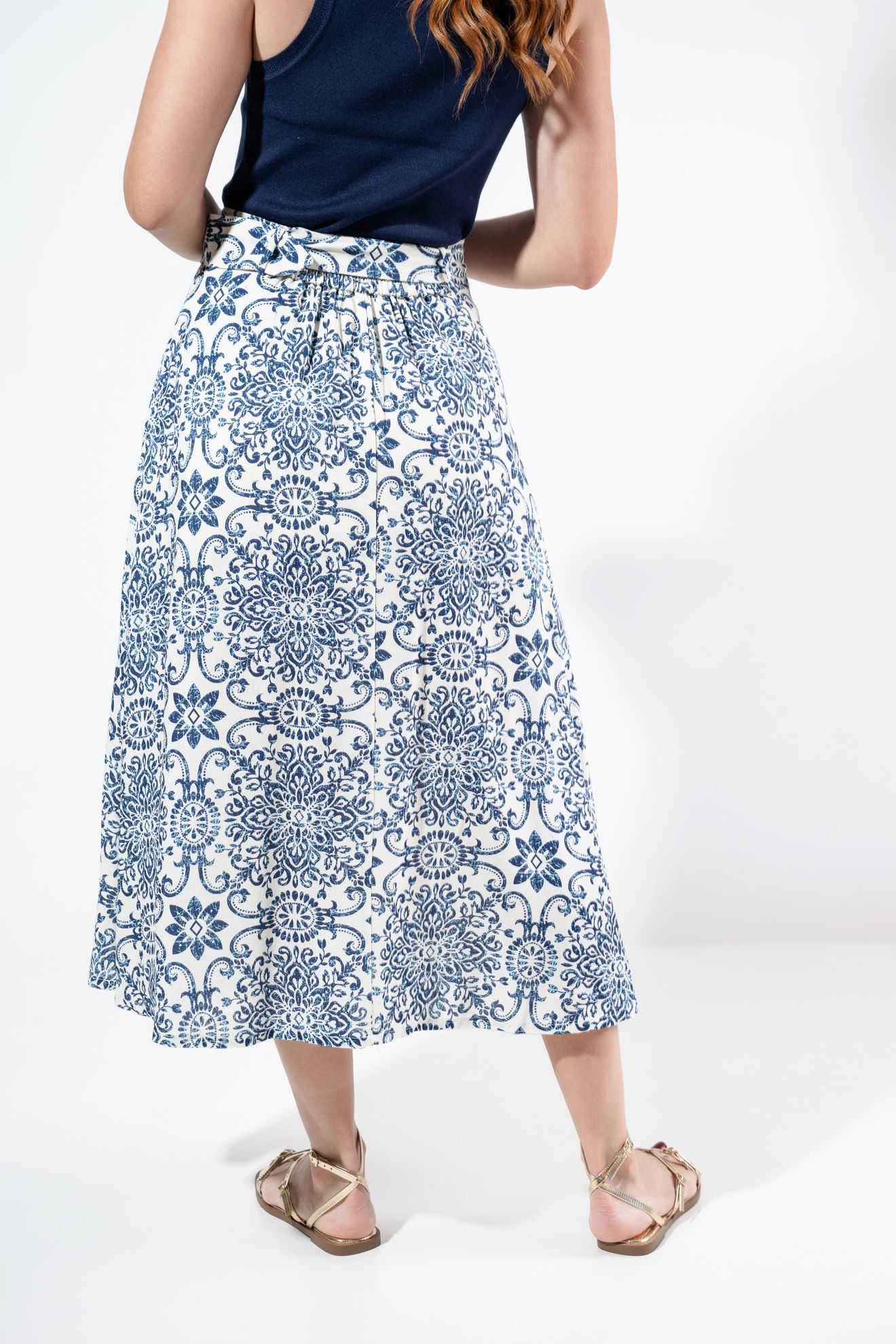 Falda Estampada Linea A Con Cinturon