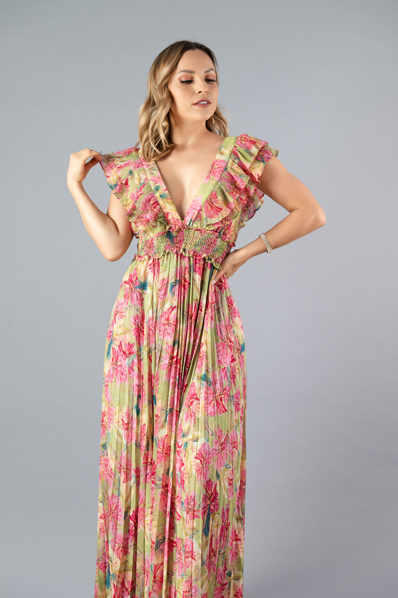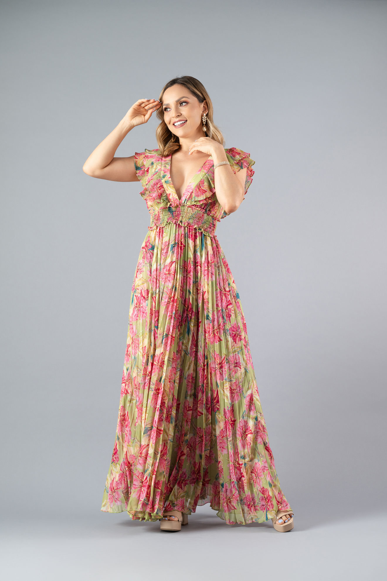 Maxi Dress Estampado Detalle Vuelos (Exclusivo Pagina)