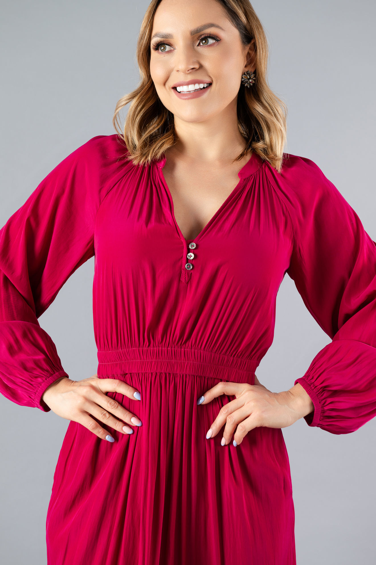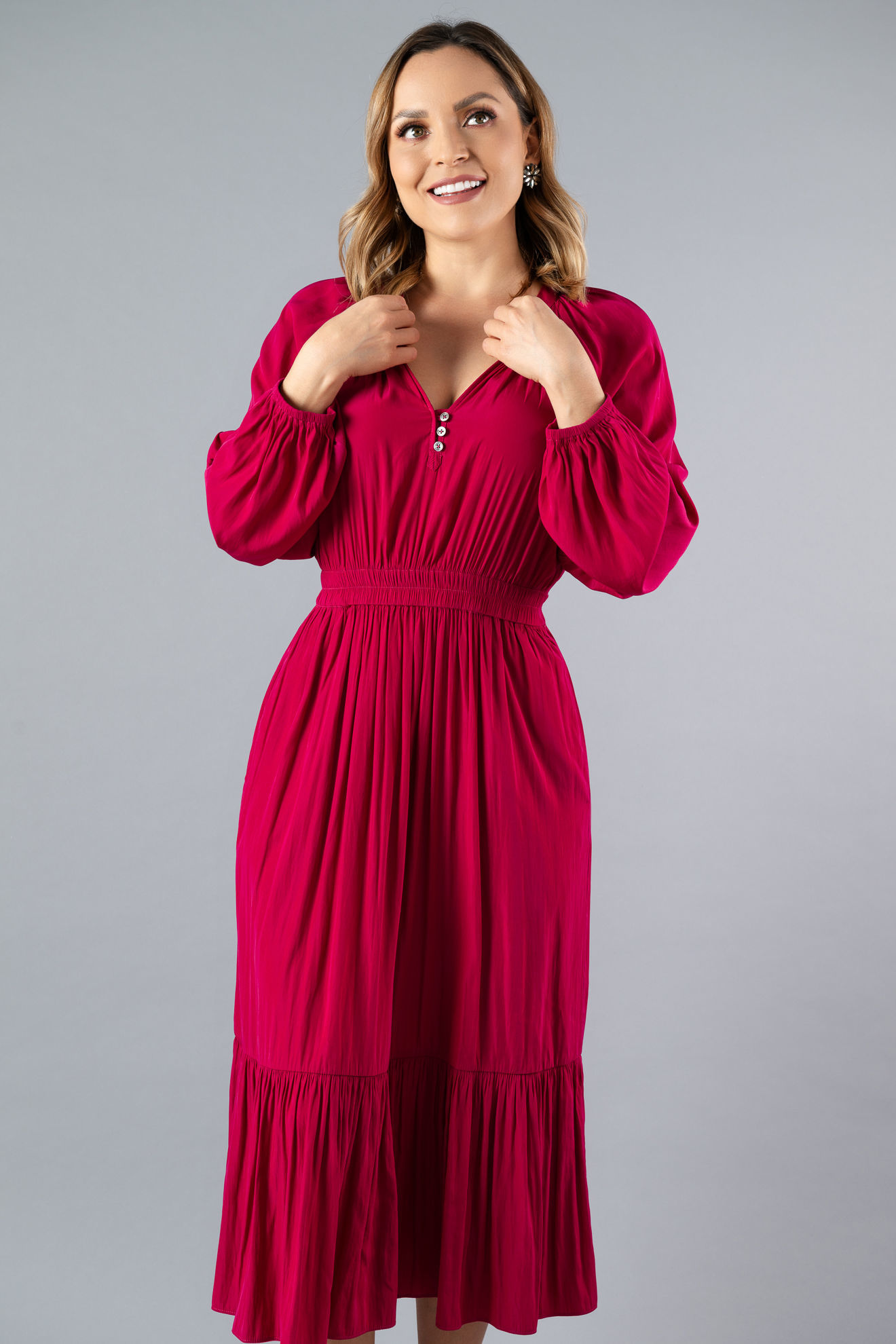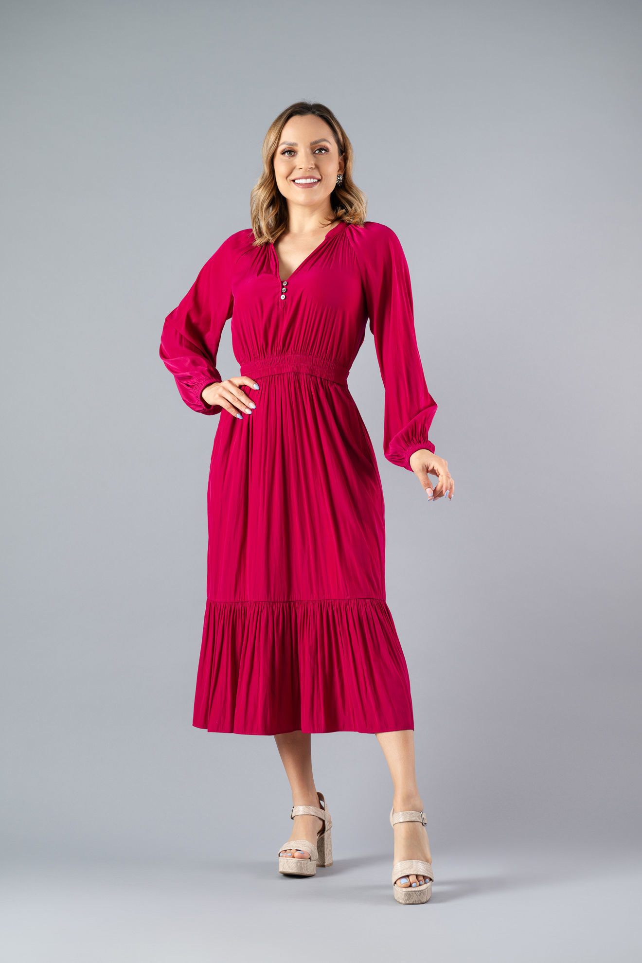 Vestido Manga Larga, Cuello V ( Exclusivo Pagina)