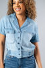 Blusa En Denim Cuello Botones, Bolsillos