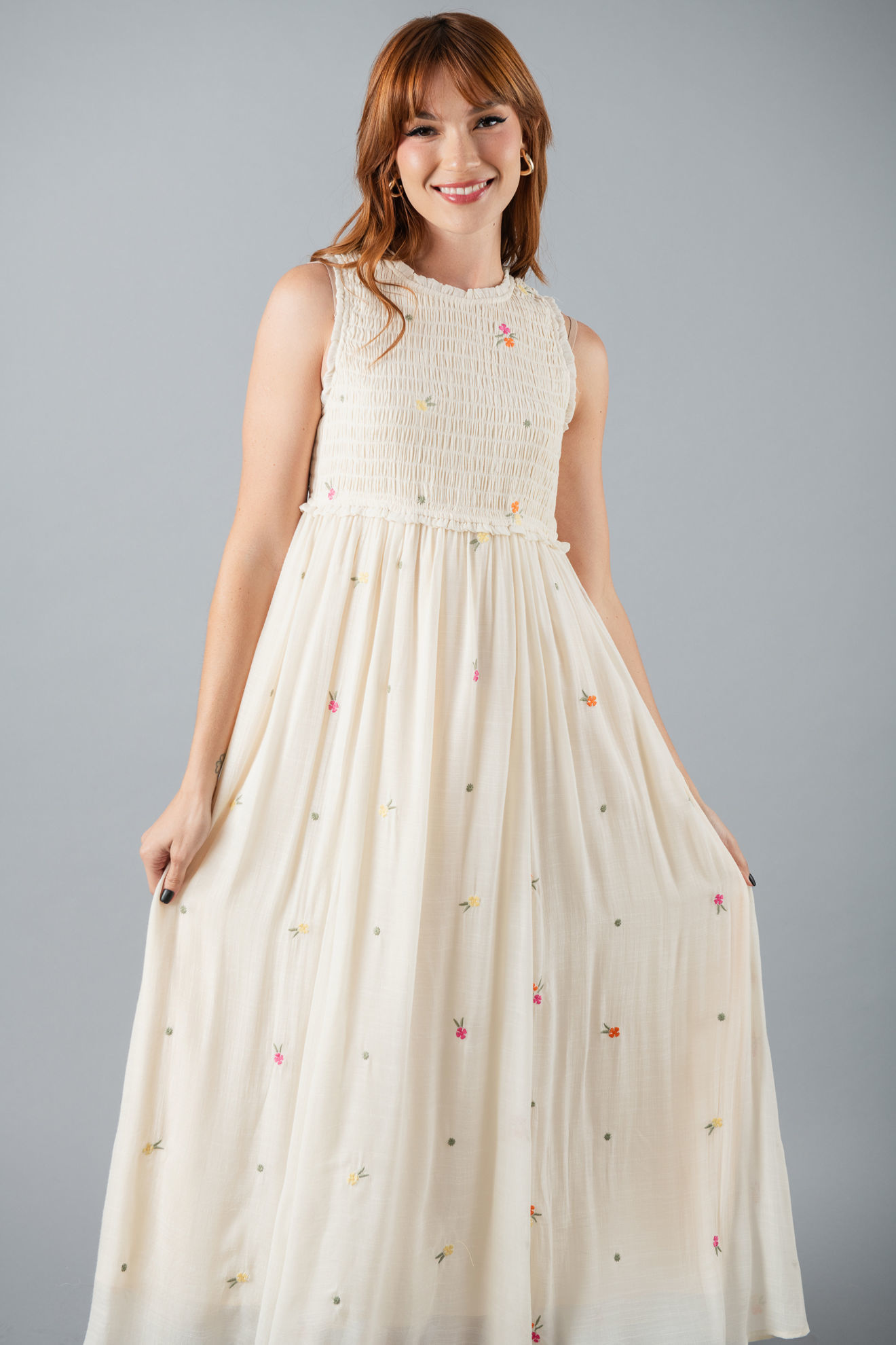 Vestido En Rayon Blusa Nido De Abeja Con Bordado ( Exclusivo Pagina)