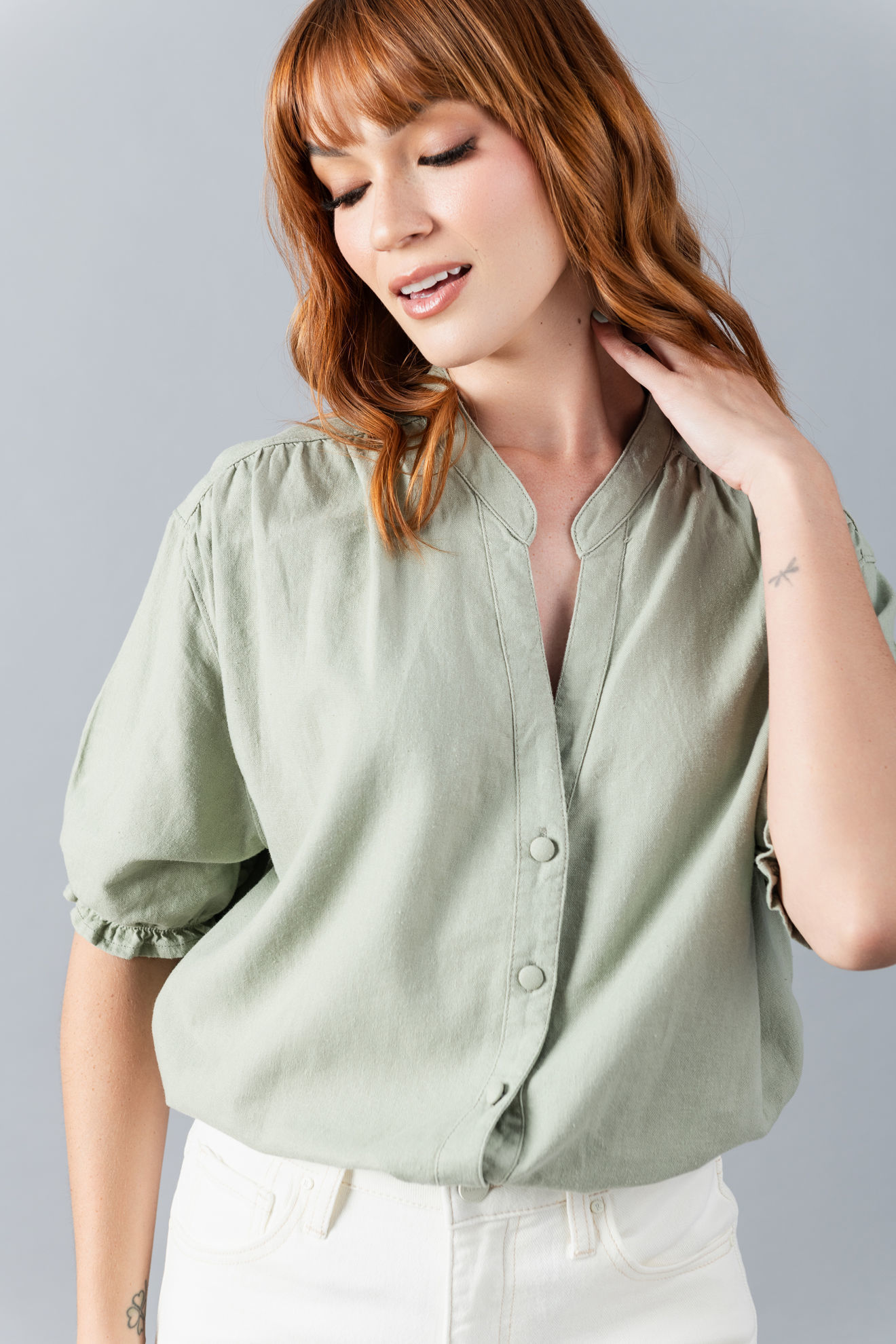 Blusa En Lino Cuello Chino (Exclusivo Pagina)