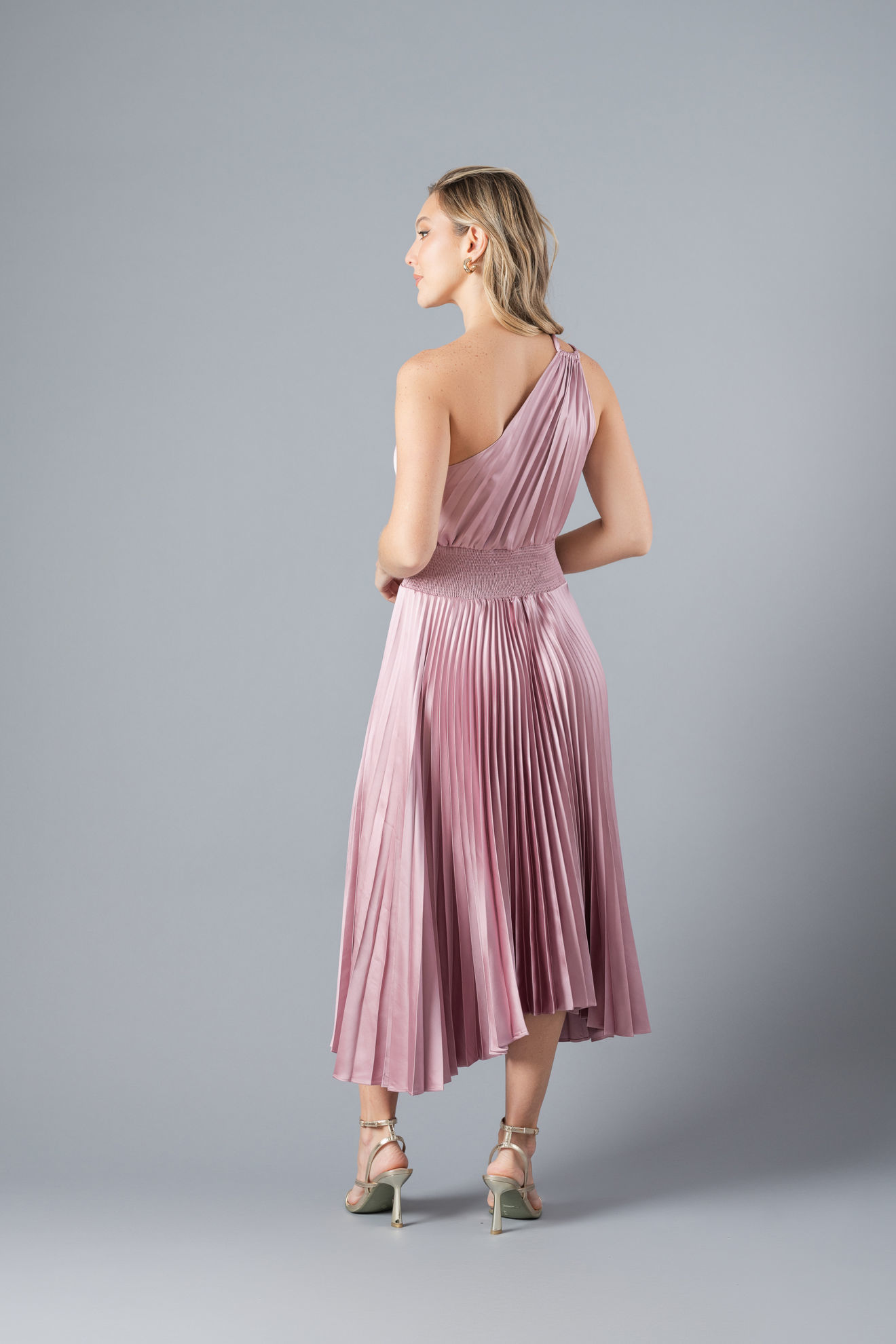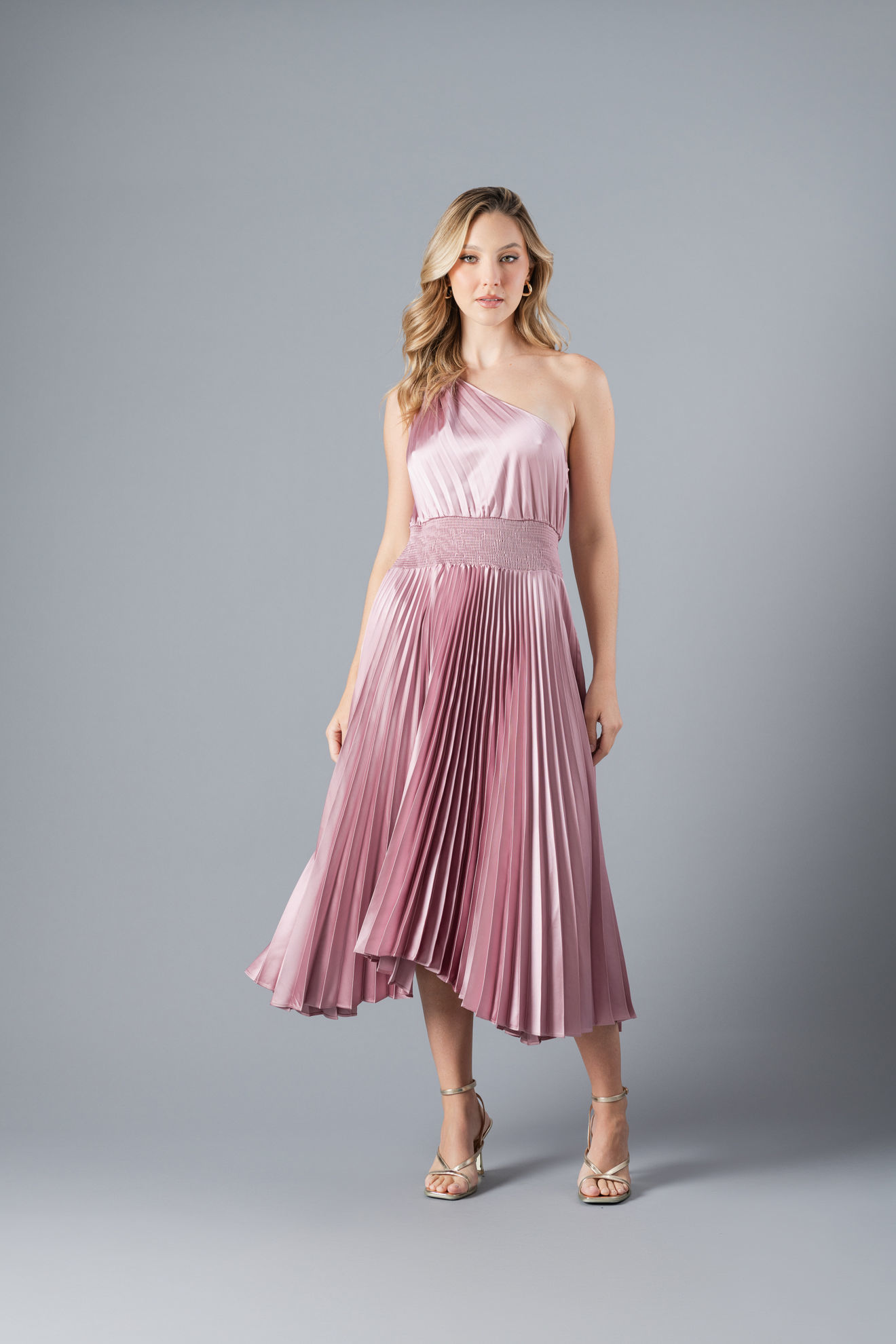 Vestido En Satin Un Hombro, Falda Plisada (Exclusivo Pagina)