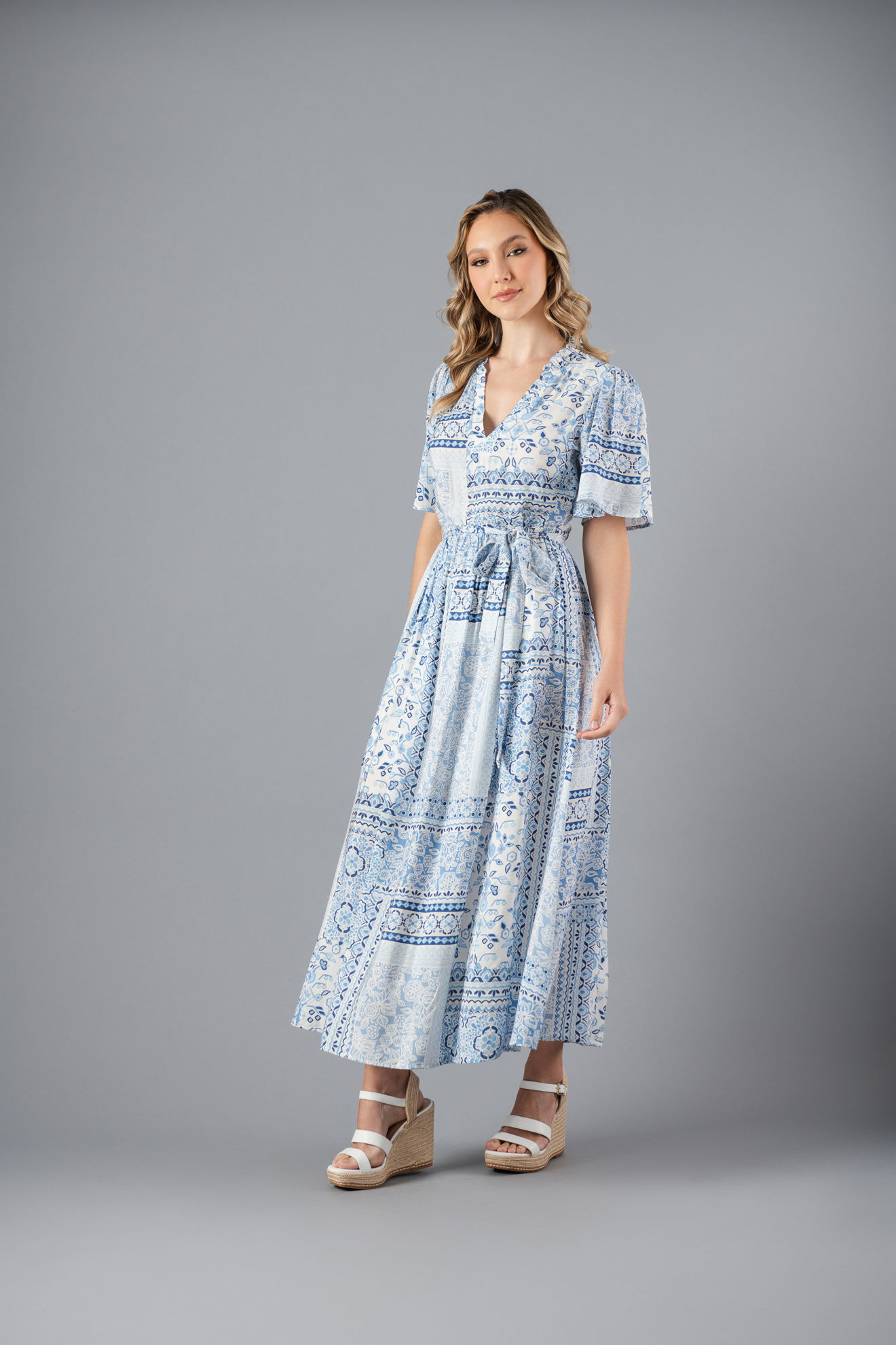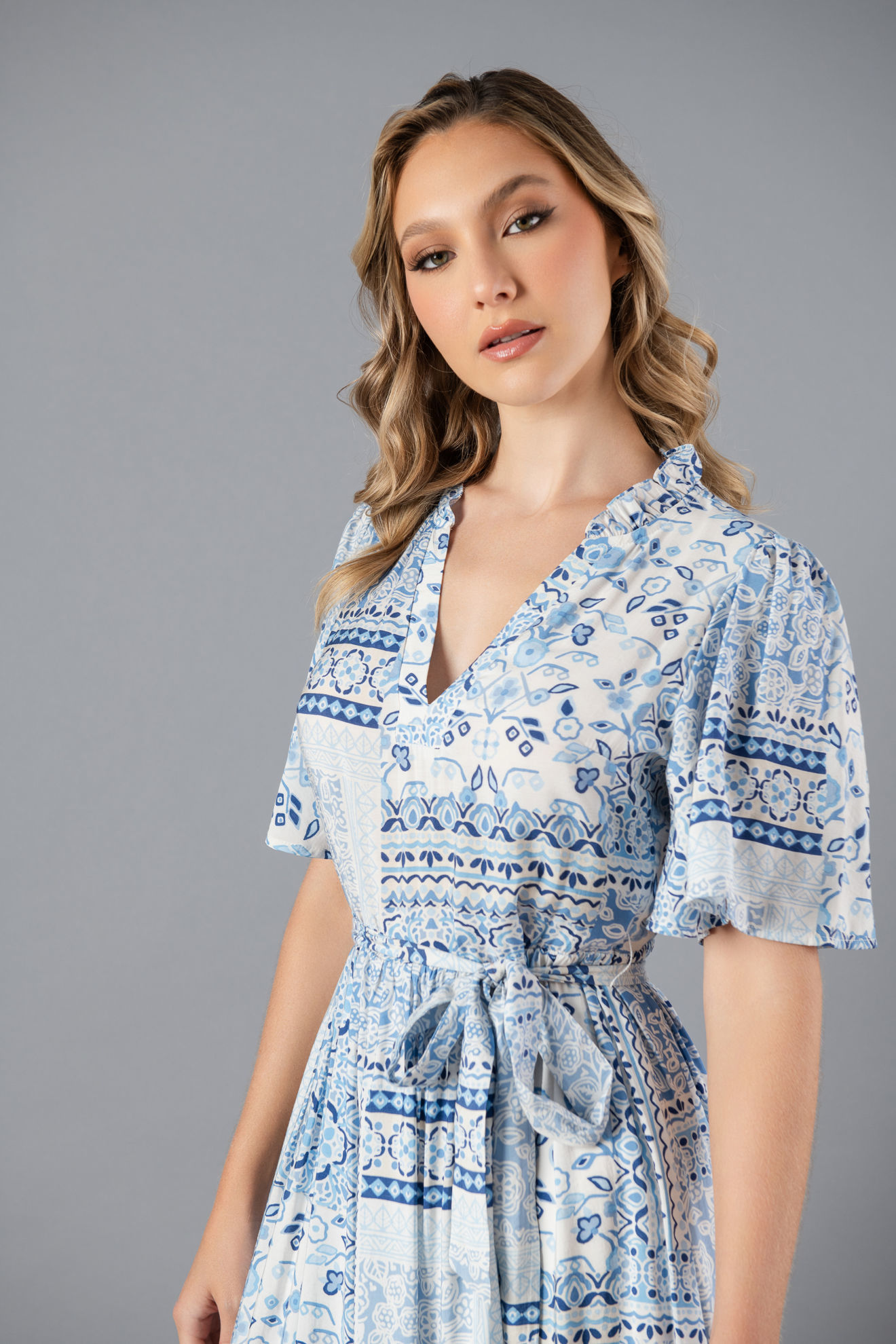 Vestido En Rayon Estampado Cuello V ( Exclusivo Pagina)