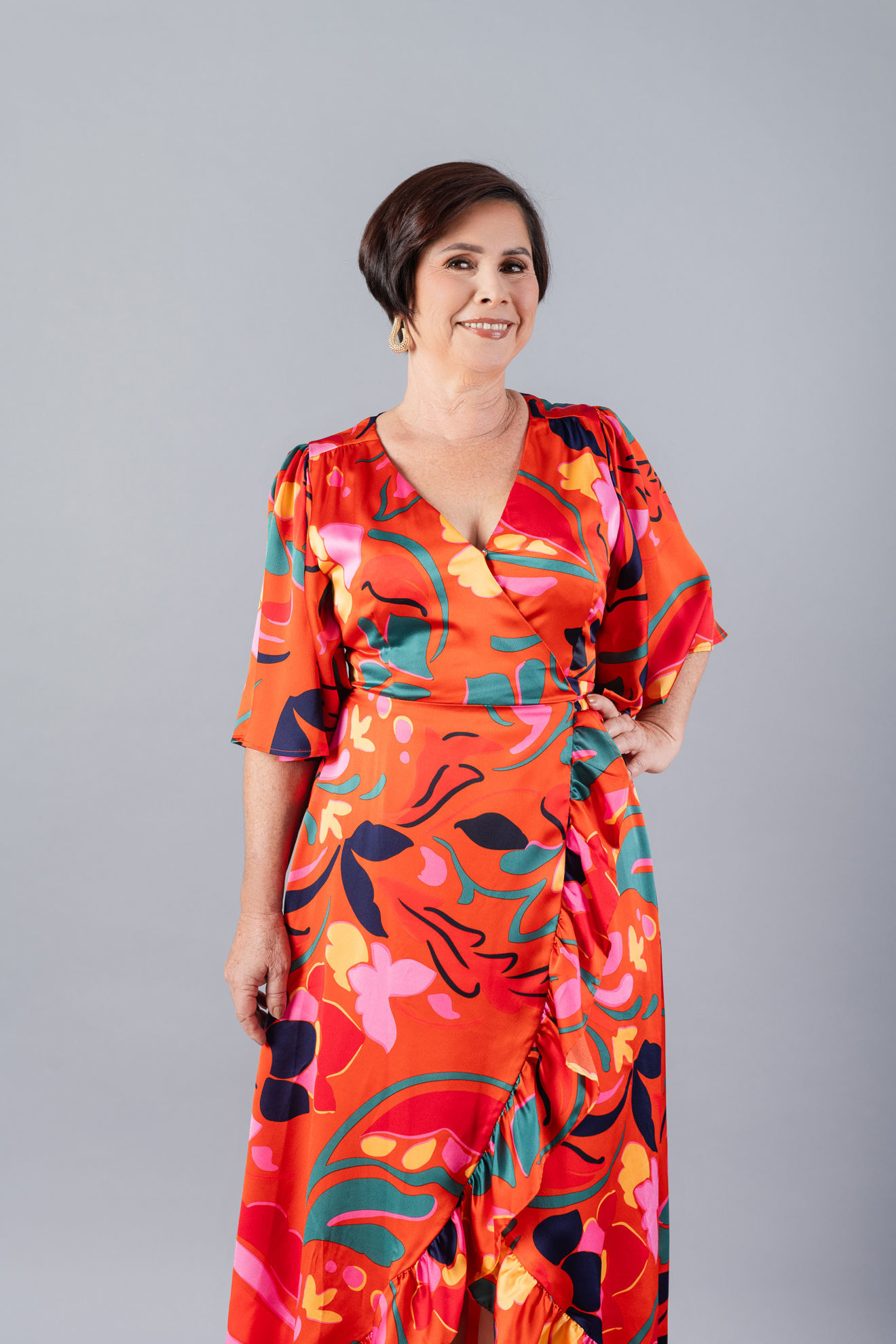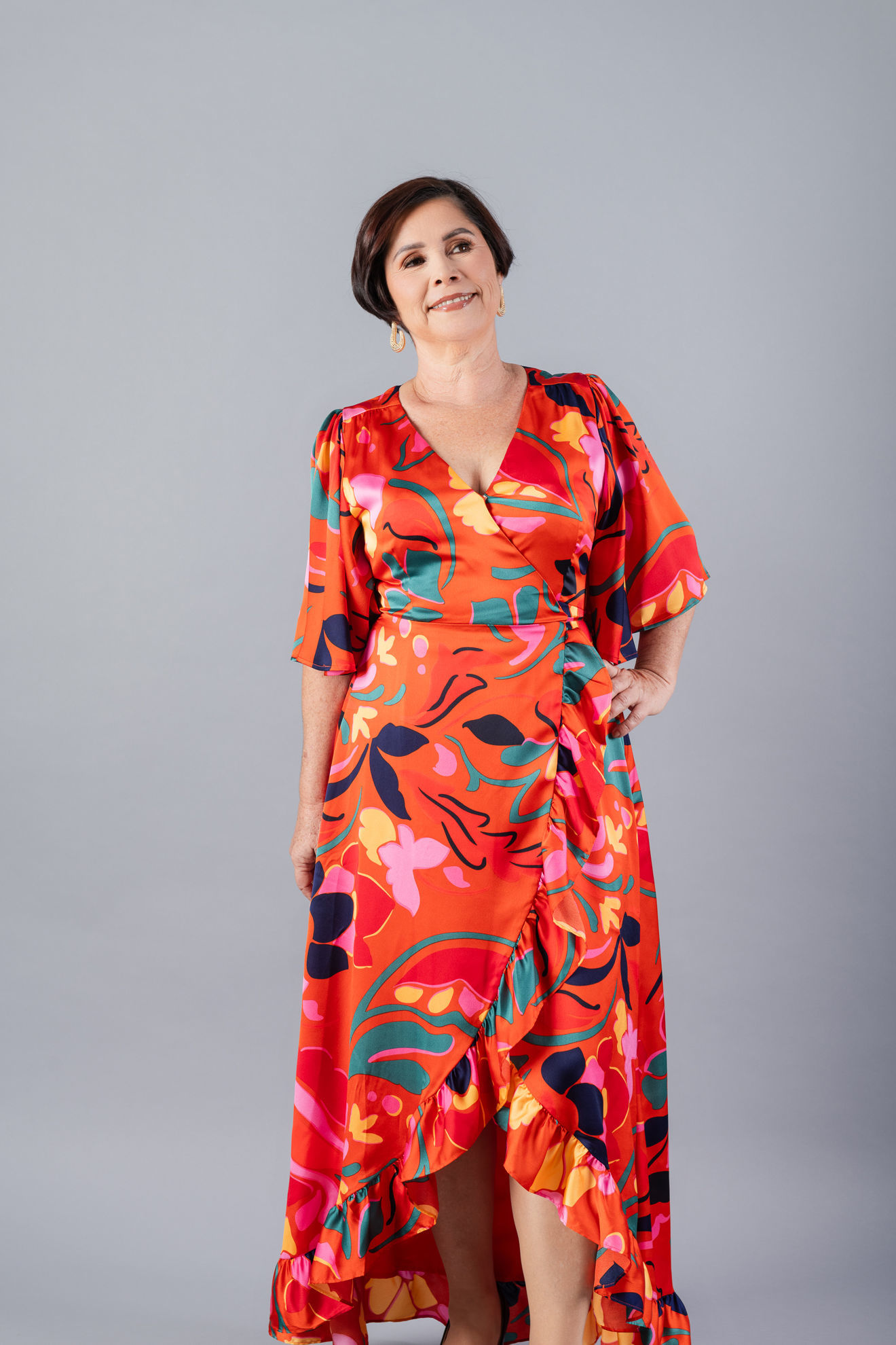 Vestido En Satin Cruzado, Estampado (Exclusivo Pagina)