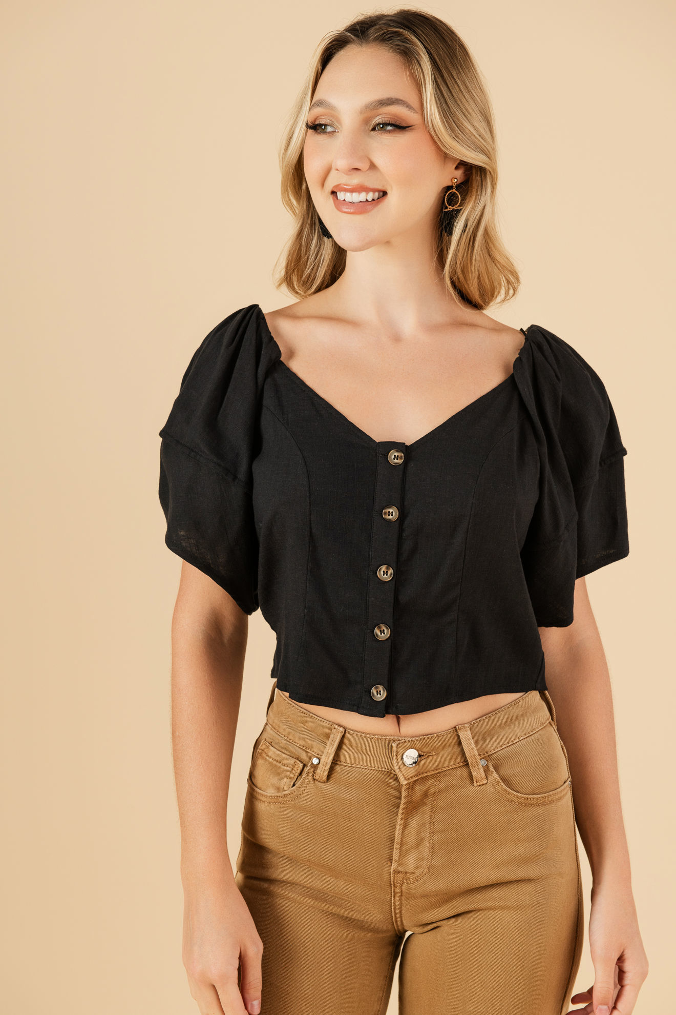 Blusa Botones Frente Cuello V ( Exclusiva Pagina)