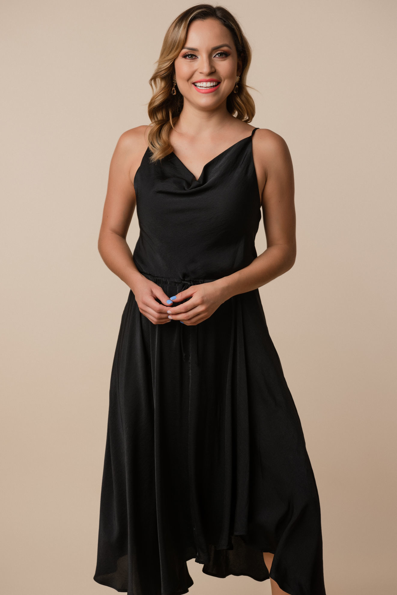 Vestido Satin Tirante Asimetrico (Exclusivo Pagina)