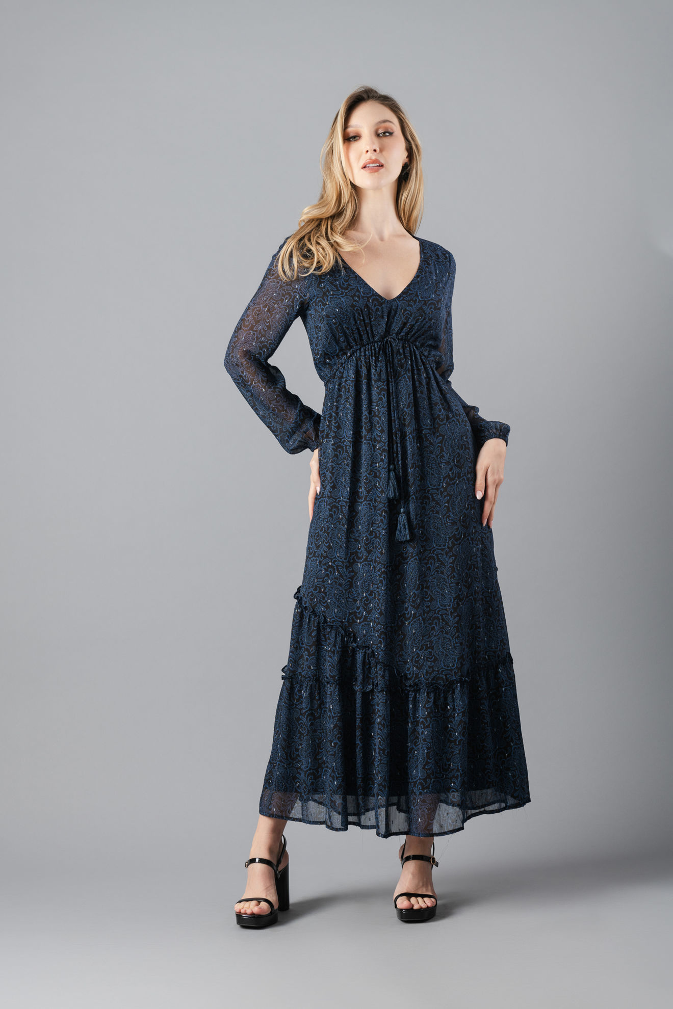 Vestido Midi Cuello V Manga Larga ( ExclusivoPagina)